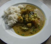 Als Beilage empfehle ich Basmati Reis. PS.: Zuviel Schärfe kann durch zugeben von Kokosmilch oder Joghurt gemildert werden. Eine leckere frische Beigabe ist eine Minze-Koriander-Paste, die auch vorher mit Poppadoms (Asia Laden) gereicht werden kann. Hierzu wird […]